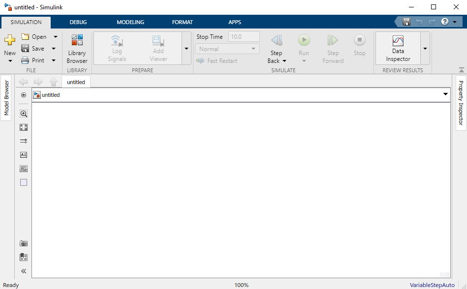 Nastavenie spojenia s Arduinom si ukážeme na prázdnom modeli. Otvoríme Simulink a zvolíme Blank model.